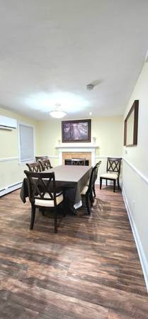 Two story house, first floor has the cover front porch,living room, kitchen, dinning room and half bathroom. There is a firepit that runs by gas on the living/dining room. It has an attached 1 car garage and a Deck.There is a large driveway that offers out street parking for few cars. all bedrooms are located on the second floor. 2 full bathroom on second floor. bathroom on first floor. It has a firepit on living/ dinning room. AC provided by minisplits. Basebord heating works with oil. Plenty of natural light through windows. It has a well and a septic.