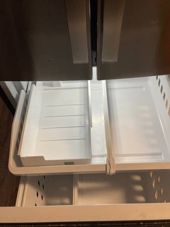 French Door with bottom drawer freezer, "Energy Star" Rated, Stainless Steel (fingerprint resistant), Gallon door storage, full bottom meat & cheese drawer, LED lighting, water filtration available (bypass plug currently used)