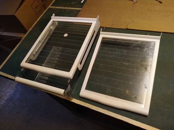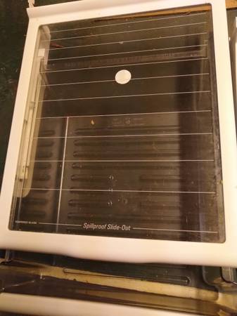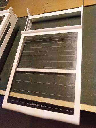 Two Whirlpool refrigerator shelves. Will sell separately, make offer! One Pull-out Shelf. One Meat Drawer Shelf. Each shelf 16.5" x 13.5". Meat Pan 5" deep. For Whirlpool and all related...