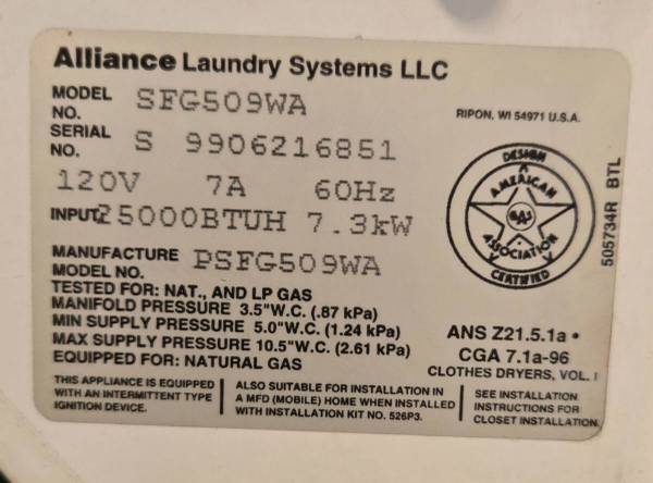 Coin Operated Washer/Dryer Washer = Kenmore Dryer = Speed Queen
