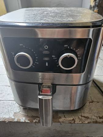 Insignia™ - 5 Qt. Analog Air Fryer - Stainless Steel, used but good working condition. Could use a deep clean but I wiped the majority clean. Msg me if you're interested. Thx for looking!