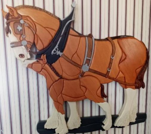 Hand carved horses wooden sculpture - $700 (Broadalbin)