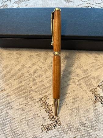 New individually handmade 24 kt. gold cherry wood writing pen, that was hand turned on lathe and the cost is a low $15 each. I also have the pen in walnut wood. This pen can make a nice gift for someone. If interested or have a question, text or call.