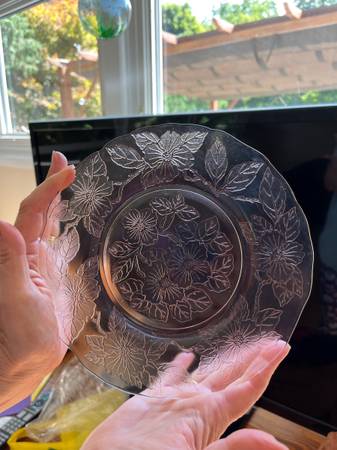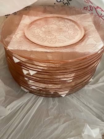 Dogwood pattern Vintage pink depression glass luncheon plates 8in diameter Asking $35 OBO