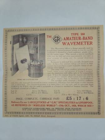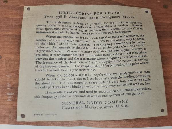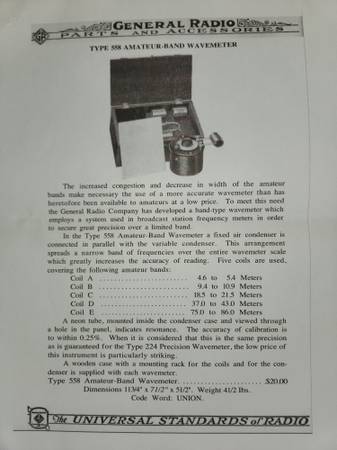 1928 General Radio Type 558-P Amateur Band Frequency Meter housed in the original wood transit case. Excellent condition.