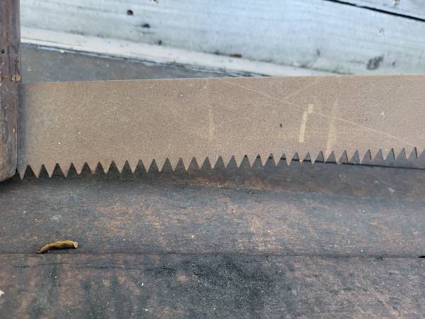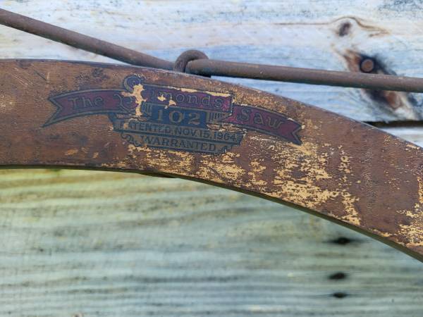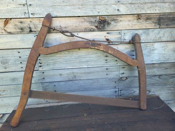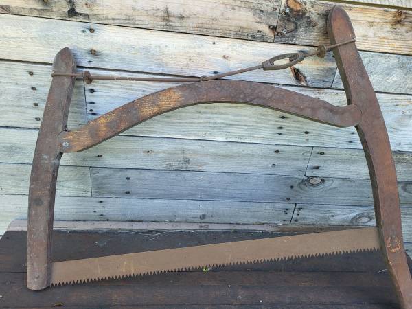 Antique saw. Blade is rusty. Has some wear and tear. Would be a good camp decoration. $50 or best offer. Cash only. Local pick up only. 3 1 five three nine 5 7 three nine five. Text preferred. Thanks.