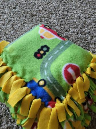 Playful road map for little cars and a cozy warm fleece blanket to snooze on. Double-sided, washable, and fun. $15