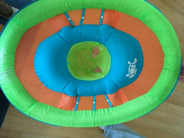 Green, blue, and orange Swim Ways turtle pool float for babies up to around 18 months. $3