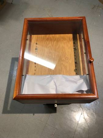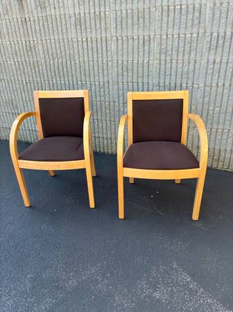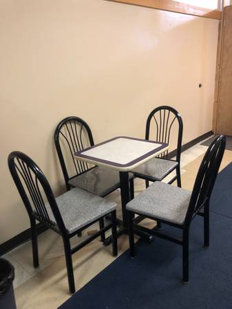 Different business items for sale ranging from $20 and up. Round wood table $30, Table and chairs set $100, electric stove $80, grocer shelves $100, office chair with wheels $30, 2 - wood office chairs $20 each, small wood wall cabinet $50, and medium wood wall cabinet $80. All prices are negotiable.