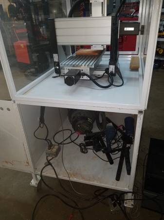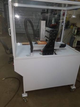 The machine is tested and it performed as per design. It is completely enclosed in a large metal cabinet (66x32x50) with 1/4" plexiglass windows and access door so it allows good view while noise and dust are well contained.