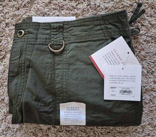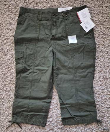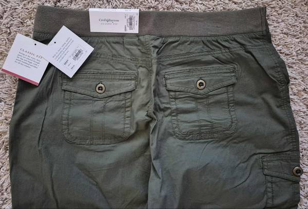Selling Women's Croft & Barrow Brand New w/Tags Size 14 Elastic Waist Button/Zip Olive Green Capris. Very Nice Capris $20 Firm! Cash Only! All Sales Are Final Thank You. Check Out The Other Items I Have Listed For Many Are New/Like New Beautiful Blouses And Jeans, Thank You!