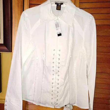 New white Grace elements zip up dress shirt size 8 Retail $58