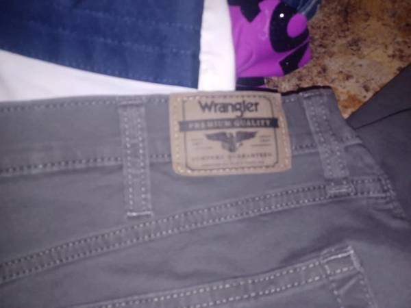 Look stylish and comfortable in these Wrangler stretch denim jeans. Perfect for men who need a regular fit, these size 40 jeans with a 30-inch inseam are a great addition to any wardrobe. The gray color is versatile and can be paired with any top for a casual look.