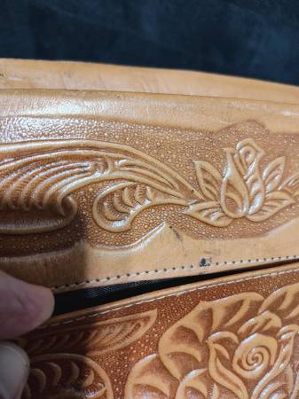 HAND MADE UNUSED PURSE FROM MEXICO . HAS MULTIPLE COMPARTMENTS AND ADJUSTABLE STRAP . DOES HAVE A SMALL TINY BLACK SPOT ON SIDE . ASKING FOR REASONABLE OFFER VIA TEXT ONLY . IF INTERESTED FEEL FREE TO TEXT 3one5 3one7 9four8seven. MUST PICK UP IN PENNELLVILLE.