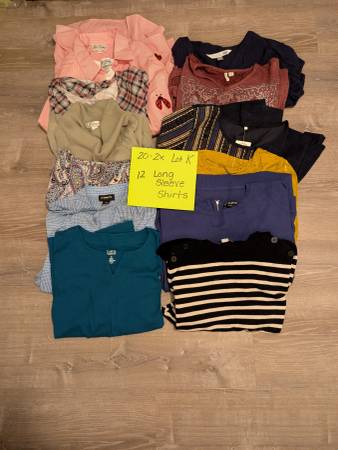 Large lots of good quality Women’s Plus Size Clothes for sale. My weight loss journey has left me with entire wardrobes in many sizes. All clothes are in good to excellent condition. Some are brand new with tags still on. Brands range from high end to discount. Sold by the lot, not by the piece. The more you buy, the cheaper the price.