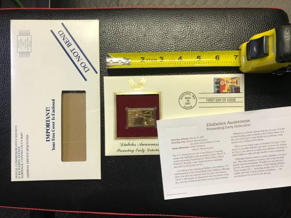 For sale is a diabetis awareness first day cover metal stamp Please see images for details