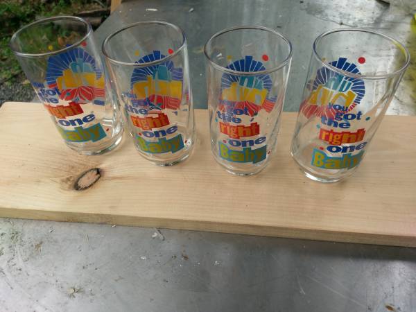 Four Pepsi Cola tumblers made in the late 1980s in mint condition. The graphics feature the Ray Charles song You Got the Right One Baby, uh huh. Call 315-637 Seventeen Fortynine.