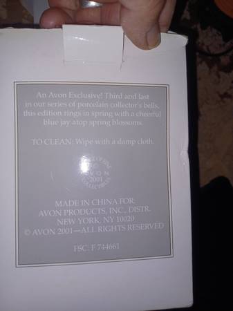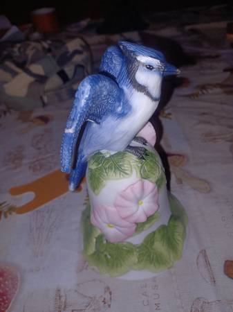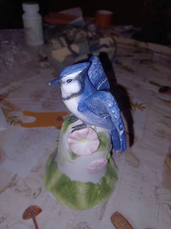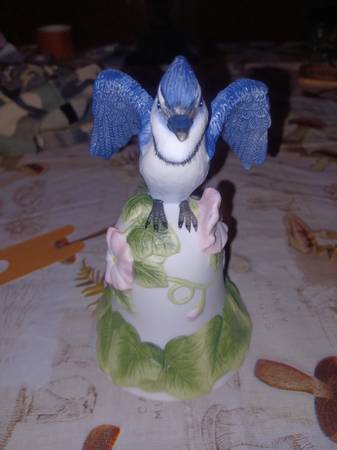 2001 Avon vintage porcelain Blue Jay bird bell. Excellent condition, no cracks or chips. Approximately 6" tall and 4" wide.