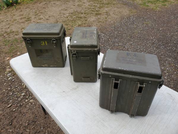 Here are 3 containers for military telegraph equipment, all aluminum.....40 dollars for the three.... Call or text 315297362six.....no emails.