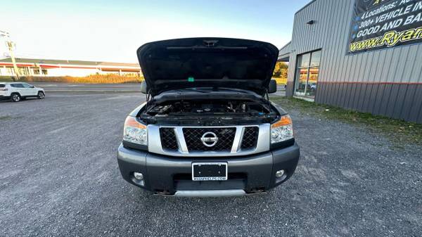 Fresh inventory serviced and ready to go, 2014 Nissan Titan PRO-4X - exterior color, "grey," this is a 4WD truck with a V8 5.6L engine averaging 12mpg city and 17mpg highway. Also featuring no accidents and NON-NY miles, with alloy wheels, a tow package, running boards, fog lights, a backup camera, parking sensors, power windows, power locks, great A/C and heat, and keyless entry.
