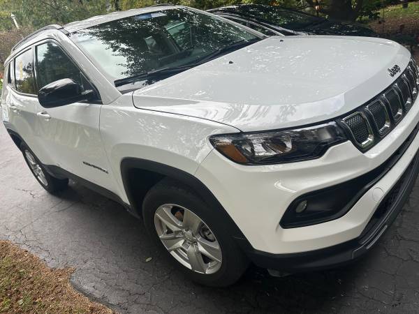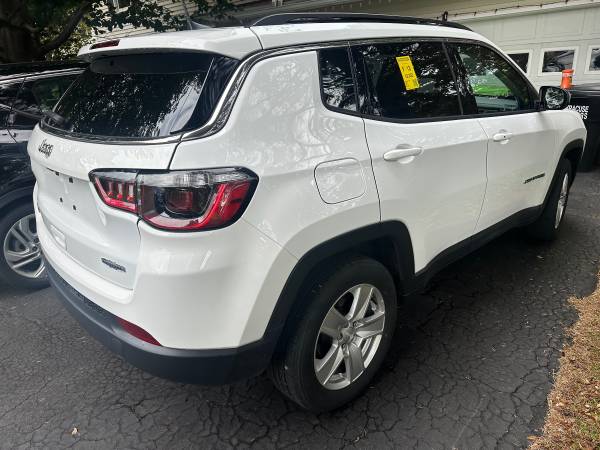 2022 Jeep, compass, latitude, white with gray leather seating, heated seats, heated steering wheel, fog lights, alloys, excellent touchscreen with push button start, two keys, rubber floor mats, only 13,000 miles, just off lease, clean history,,call Paul K Sales to set up an appointment for a test drive at 315-243-9981