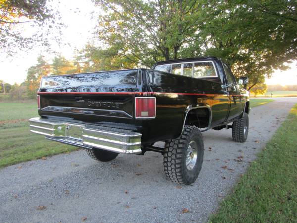 This super clean K-10 4x4 comes with many new parts. New paint, new Rough Country 4 inch lift, new 33x 12.5R15 tires, new shocks bumpers, seat cover, dash pad, spray on bedliner, plus more! 305V8, auto trans, air conditioning, rear sliding window. Odometer reads 40,700 miles. Truck runs, rides and drives like new. Check it out. $22,500. Please call me 585-26one-six627 with all of your questions. Please do not message me asking if it is still available, if you are reading this ad it is still for sale. Calling is the BEST way to get all of your questions answered, as I have a lot of items for sale, and do not have time to text back and forth. Thank you in advance.