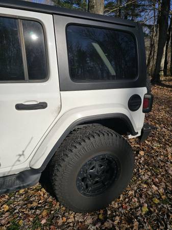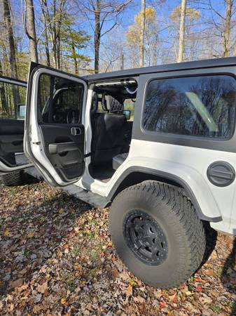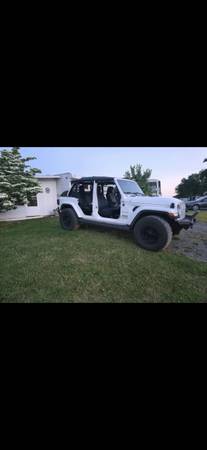 2018 JLU Wrangler. It has 98k miles and runs great. No damage, no accidents. For a 2018 it's pretty clean underneath. Has 35" tires and still plenty of miles left on them. Cleans up real nice. Best vehicle for winter(4×4) and summer, Topless (top down)naked(doors off and top down). I can throw in the soft top if the offer is right. Text or call three 1 five nine 5 two 11 four 9