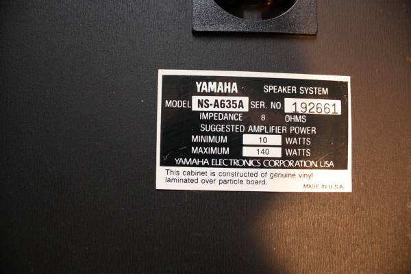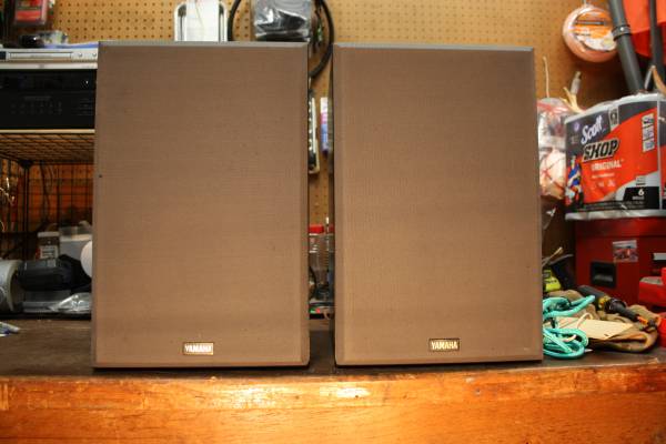 Yamaha bookshelf speakers NS-A635A .Consecutive serial numbers. Cones are in excellent condition. Some scratches on the cabinets and some small holes in the grill covers. Wall mounting wires on the back of both. Email, Call or text me at show contact info