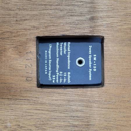 Vintage sourced Japanese speakers 1968-71. Acoustic Suspension (Sealed Cabinets), 8 ohm, max 25 watt. Two Way (Bass 12", Tweeter 3.5"). Speaker connector is phono plus and must be changed. Cabinet screwed from back. Crisp highs, Nice