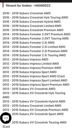 New Timken rear wheel bearing hubs. I bought these for my 2014 Subaru Forester. They were never installed and I no longer have the vehicle. $60 for the pair.