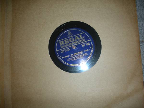 All are 78 rpm records recorded by The International Salvation Army Band in London, England. Side one is a cornet trio titled Cheer Up and side two is a cornet solo titled Heavenly Rejoicing. 2nd record is a duet titled The Cleansing Stream on side one and on side two is Go Down, Moses (concl). 3rd record is O For the Wings of a Dove as a trombone solo, done my Maisie Ringham on one side and A Song of Faith on the other side, also by M. Ringham. 4th record is put by Triumphonic--side one is The Stranger of Galilee sung by soloist Envoy Frank Fowler accompanied by The New York Staff Band Male Chorus and side two is The Valiant Heart Part 1 by The New York Staff Band. The 5th record is done in German and is included in the sale but is not part of the original album. The label reads "Hemlandssanger Del 1" and Hemlandssanger Del 2". The album records are engraved with an ID code. The album itself is in only fair condition, but the records look ok. I have no way to test for scratches, but I don't see any obvious ones. These records are most likely from the 1940s. OFFERS CONSIDERED. S&H extra.