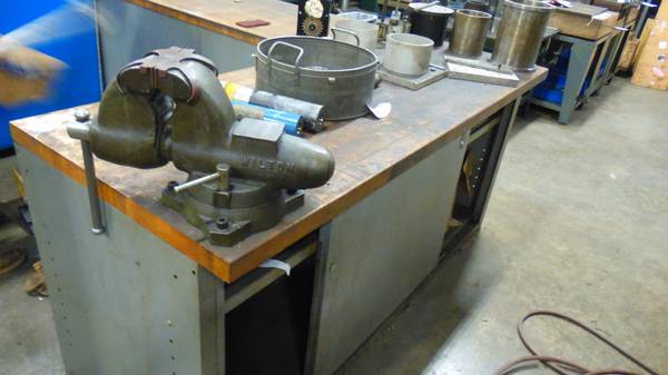 38 Industrial 8'x2' tool bench w/ Craftsman HD vise