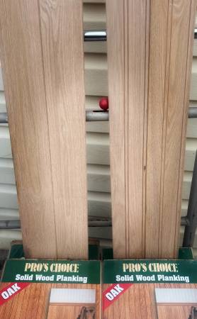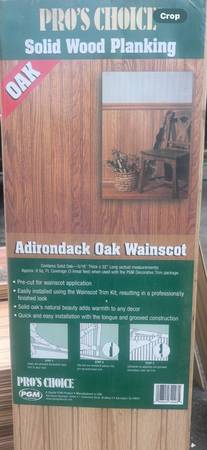 12 packages of solid oak Waynes coating each package covers 9 ft.². It is chair rail height brand new wasn’t needed. My loss is your gain paid 70 per package will take 40 per package.