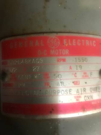 dc motor. GE, 1/2 hp, 27 volts , 19 amps , 1550 rpm , mod# 5bpb48kac9 ,3/4 shaft