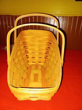 Signed 1991 Longaberger Sleigh Basket w2 handles, Plastic Liner 9.5 x 13