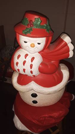 VINTAGE Ceramic Red Coat Snowman - $60