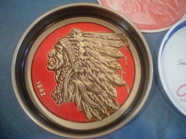 Iroquois beer tray set of 2 Indian head in red like new condition with tray liner Indian head in white good condition some rusting 75.00 BEST OFFER call