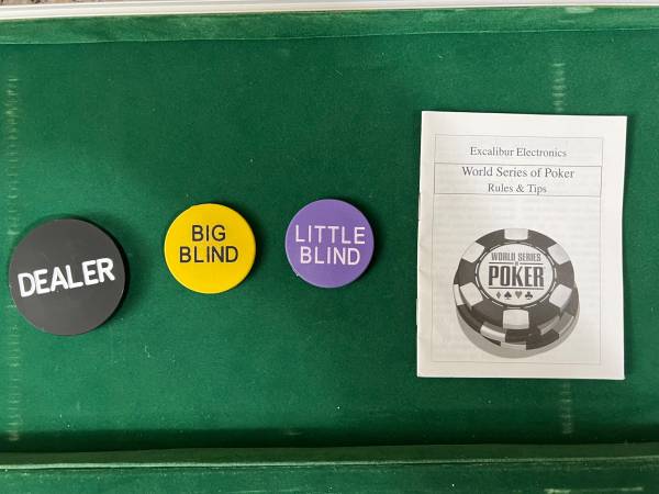 Poker Chip Set w/ Aluminum Case **Like New** (2) Brand New, Sealed, Decks of Bicycle Playing Cards Little Blind, Big Blind, and Dealer Button World Series of Poker Rules & Tips Dice Game Smoke...