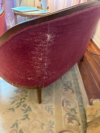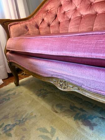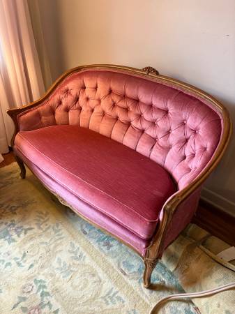 vgc upholstered pink love seats. some back damage but minimal construction solid, covered front for most of life, includes covers ideal for wedding or special events $300 each OBO