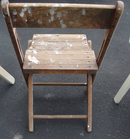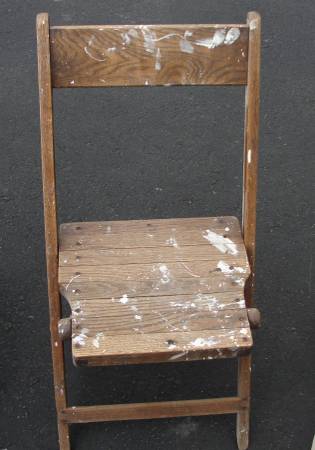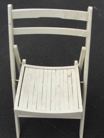 For sale a set of 3 different old wooden cottage chairs. All are intact, 2 are painted and one is natural.