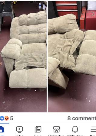 Bought new from Ashley furniture $650,purchased extended warranty, this happened in an adult home,no pets, seasonaly used, neither Ashley nor the external warranty company would do anything about this. Chair was less than 2 years old!!!