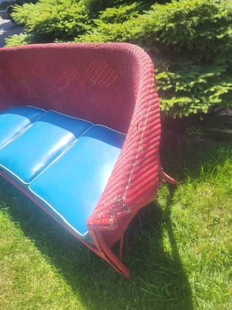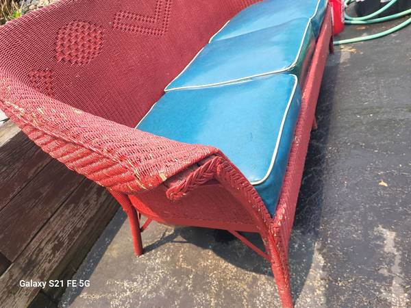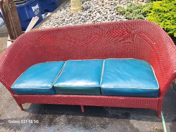 Wicker Couch Vintage, has been in family for 60+ years. Remained indoors for most of it's existence, but recently been stored outside, it's still in great shape with only a couple flaws. Makes a nice place to gather in a porch or patio space. A conversation piece. $125.00 or best offer. Cash only upon pickup. No holds, first come.