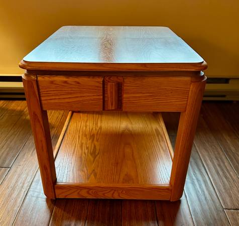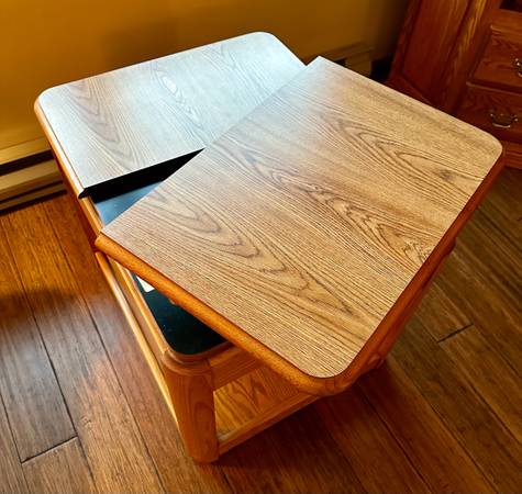 Pick up only. Solid end table with adjustable top. 27” x 22” x 22”