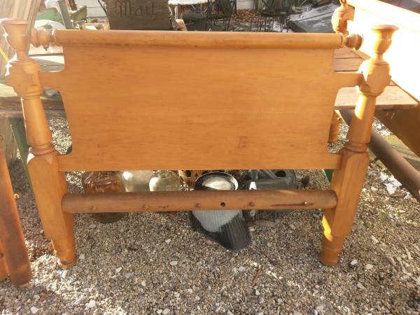 A mid 19th century solid cherry bed with beautiful urn finials.