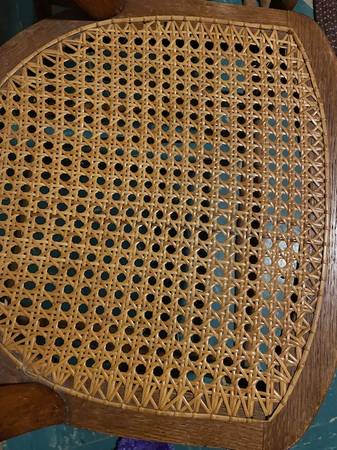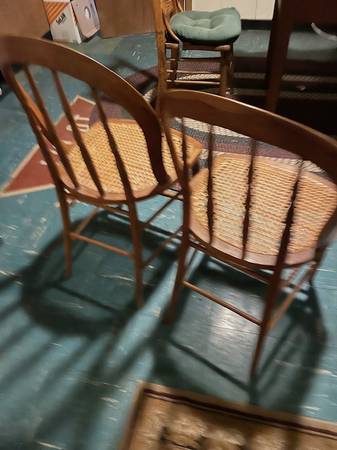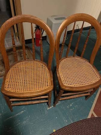 Two antique oak chairs with caned seats ans curved spindle back. Caning is in excellent condition (were recaned after I purchased them).