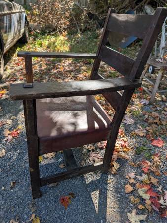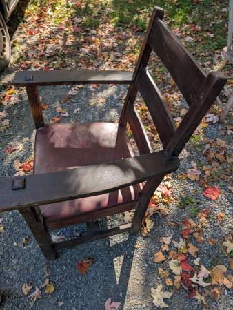 It has a unique through tenoned H base, a design Gustav Stickley used on a bungalow armchair at the beginning of the 20th century.