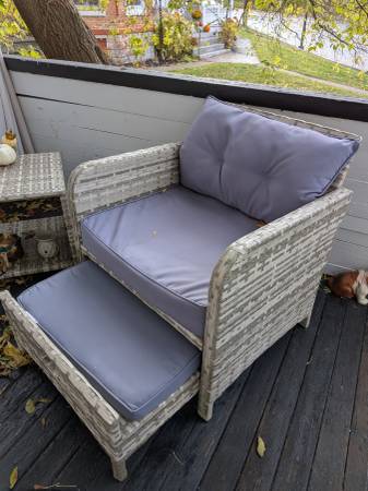 The set is in very good condition. I am attaching a link to the set as it was purchased (minus the umbrella) to provide better pictures. https://a.co/d/fVdXpYq I will include chair covers I...