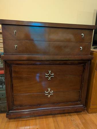 Well made wood dresser. Bottom drawer is missing inner guide post but the drawer is still functional and lines up.