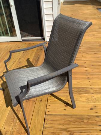 Nice patio set includes a glass rectangle shaped table , 3 chairs, an umbrella and umbrella stand. Some rust from outdoor weather.Umbrella without rips.