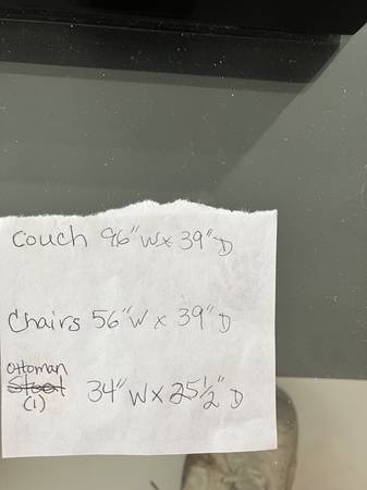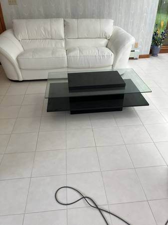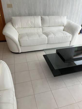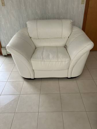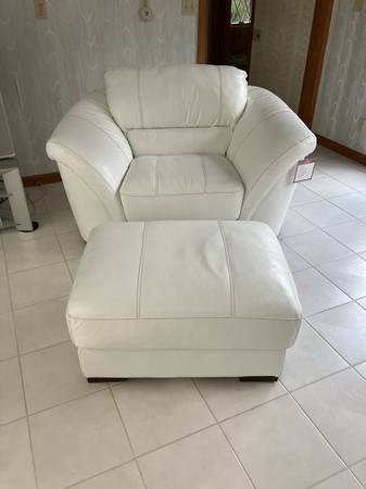 White leather Catina Furniture (Handmade in Italy). Very comfortable with high back soft seat cushions for extra comfort. This furniture was in an extra seating room and rarely used. Tag is still on a chair. Set includes 1 couch, 2 chairs and 1 ottoman. Excellent condition.